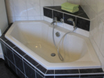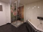 Dahinter lieg das Bad mit grosser, ebenerdiger Eckdusche und einer Badewanne zum Entspannen. |