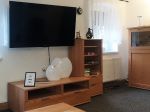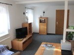 Die Wohnstube ist relativ gross und vom Stil her eher schlicht gehalten. Eine gemütliche Eckcouch mit Bettfunktion lädt zum Relaxen ein. Flachbild-TV sowie WLAN verstehen sich von selbst. |